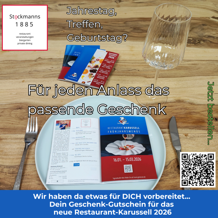 100 % Stöckmann in 4 Gängen (Hauptgang Fisch oder Fleisch zur Auswahl) und das vom (16.01. bis 15.03.2026)